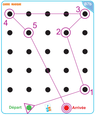 Peut-être serait-il plus judicieux de proposer des plots avec des pinces sinon on peut donner des cartons de contrôle aux élèves. Mais on se retrouve avec la contrainte de courir avec un papier/un crayon/une feuille d’où l’idée n°1 ! Investissement faible…. Cela suppose ensuite de mettre en place un carré magique suffisamment grand