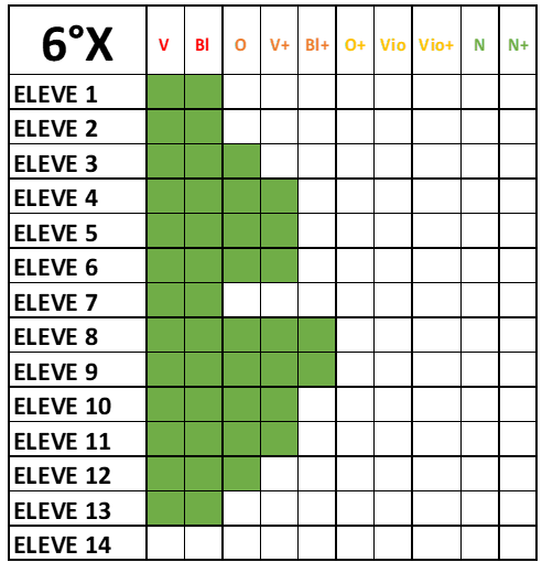 Parallèlement à cela les élèves doivent fermer des niveaux : Couleurs de parcours