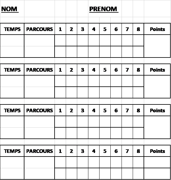 On fonctionne par session de 20′ chaque élève a une fiche avec 10 parcours à faire