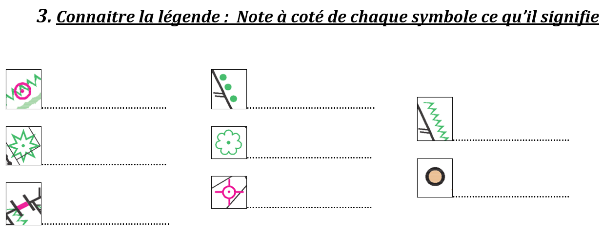 Ce premier travail sur la légende pourrait ne pas être mis en place dès cette première séance car il n’est pas utilisé en tant que tel par la suite. Il prépare le travail qui sera demandé en seconde séance.