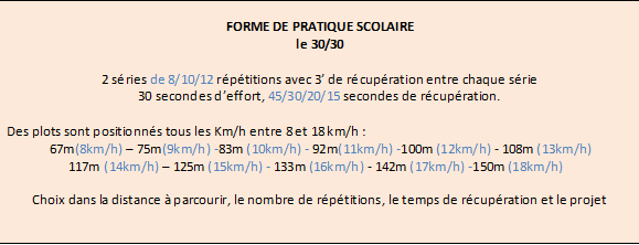 Ce test est associé à une séance encadrée par l’enseignant à la vitesse ainsi définie, les élèves choisissant le nombre de répétitions.